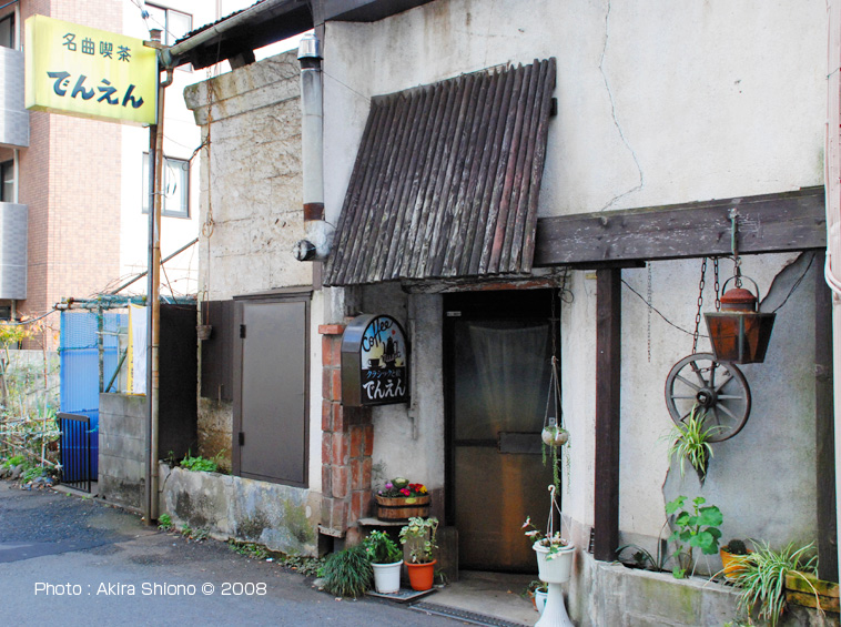 国分寺駅北口を出てココブンジ-ウエストを東に周り、東側に伸びる「東栄会通り」を道を進むと、道はやがて変形三叉路になります。その手前にあるきた方向へ向かう路地を入った二軒目、何とも今流行りのレトロな昭和を感じさせる入口が目に入ります。ここが、歴史ある喫茶店「でんえん」です。 【みにこみ30号P8の2008.12頃の取材記事】 トップへ それではマスターにご紹介いただきます。 「昭和32年に開店してから、半世紀が流れました。 店内は開店当時のようで古い喫茶店の雰囲気です。壁面の絵画・写真などをお楽しみください。コーヒーと音楽でホッとくつろげるひとときをおすすめします。」 昭和の雰囲気を感じに是非お越しください。 【メニュー】 ブレンドコーヒー 450円 ケーキとドリンクのセット 800円お酒も取り扱っています。 【インフォメーション】 でんえん 住所:国分寺市本町2−8−7 TEL:042 321−2431 営業時間:12:00〜20:00 定休日:木曜日 CHSのIROIROサイト:人気サイト トップへ |
