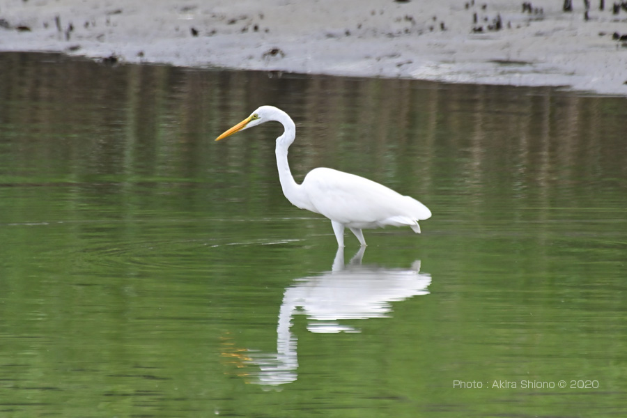 干潟のダイサギ/水辺の野鳥 ペリカン目サギ科アオサギ属