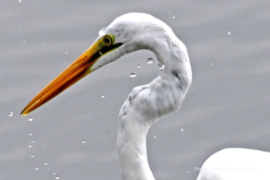 サブカメラをD500+TC-14EIII+70-200mmf4VRとしていたものを、今回Z50のダブルレンズキットを手に入れて、軽量撮影システムを加えました。今まではDXのダブルレンズキットは初心者用と思っていました。しかし手に入れてから色々撮影していくと、「Z50」は野鳥でも通用するのではないかと撮影に持って行くことにしました。この望遠レンズは、35mm換算で75-375mmとなり、Z6IIの1000〜1500mmより近距離の被写体や、見失わない程度の画角で活躍するとしてわざわざ2台持ち出している訳です。 ![]() 岸辺で追い詰めたボラの若魚をくわえたダイサギ(Z50+NIKKOR Z50mm-250mmVRテレ端) 撮影NIKON Z50+NIKKOR Z50-250mmVR 375mm相当,ISO800,1/1600,f10,+0.3段 トリミング ![]() Z6IITC-20EIII+200-500mmVRで撮影したボラをくわえたダイサギ 撮影NIKON Z6II+FTZ+TC-20EIII+AF-S200-500mmf5.6E VR 750mm相当(FX),ISO2000,1/4000,f11,0段 トリミング 干潟・海辺・水辺の野鳥11月中旬:ダイサギ トップへ ![]() 飛行中のダイサギ(トリミング) ![]() 着水寸前のダイサギ(トリミング) 撮影NIKON Z6+FTZ+AF-S200-500mmf5.6E+TC-20EIII 1020mm相当,ISO3200,1/8000,f11,-0.7段 ![]() 狙って捕まえたのは、ハゼの様な小さな魚でした。 撮影NIKON D500+TC-14EIII+AF-S70-200mmf4G 392mm相当,ISO1250,1/4000,f10,0段 湖沼・海辺・水辺の野鳥9月上旬:ダイサギ トップへ ![]() 葦原の緑が水面に映る岸辺で、餌を探すダイサギ(トリミング)。 撮影NIKON Z6+FTZ+AF-S200-500mmf5.6E+TC-20EIII 1500mm相当,ISO1250,1/800,f11,0段 ![]() 餌の魚を取り損ね水しぶきだけが飛び散っています。 撮影NIKON Z6+FTZ+AF-S200-500mmf5.6E+TC-20EIII 1300mm相当,ISO1250,1/2500,f11,-0.3段