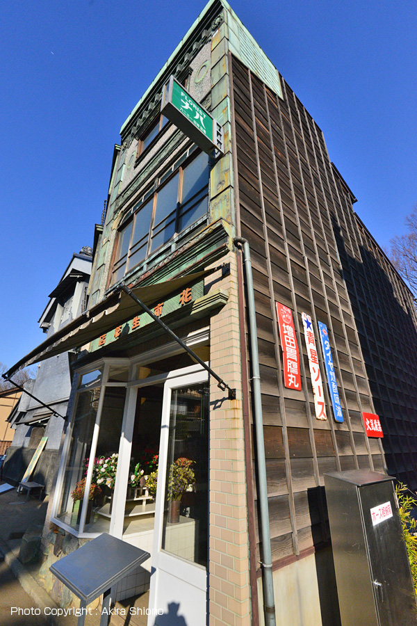 花屋らしくデザインされています。店内は昭和30年代の花屋を再現しています。 武居三省堂の店内 花市生花店の外観 大和屋本店(乾物屋)と植村邸 ▲top