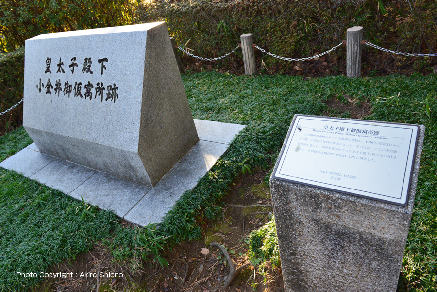 この場所の西側にあった文部省の建物が、1946年(昭和21)から3年間、学習院中等科の校舎になった。そのため、ここに東宮御仮寓所が造られ、中等科在学中だった皇太子殿下(現天皇)が住まわれた。この建物は、1949年(昭和24)12月に焼失した。 1962年(昭和37)1月設置 東京都 (文・石碑説明板より)