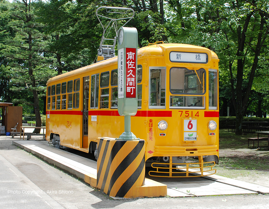 上の写真は、都電7500形です。渋谷駅前を起終点とし、新橋・浜町中ノ橋・(神田)須田町まで走っていた車輌です。交通量の急激な増加にともない、都電は荒川線を除いて1972年(昭和47)から順次廃止されました。