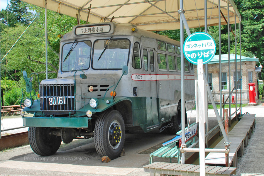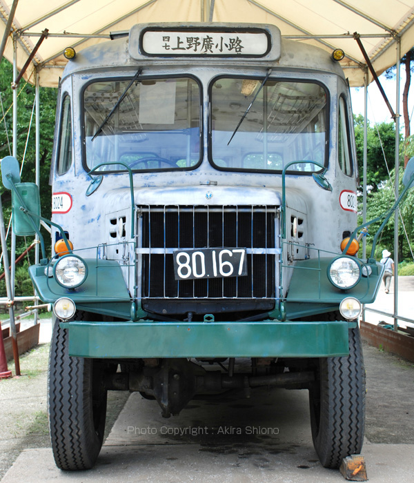 ボンネットバスとは、エンジンを車両の前部に置き、ちょうど女性や用事が冠る帽子(ボンネット)の様に、機関部を覆っている形をしているところから、そう呼ばれるようになったと云う説があります。現在のようなエンジンを車両の後部に置いた箱端のバスは、戦後になってから開発されました。