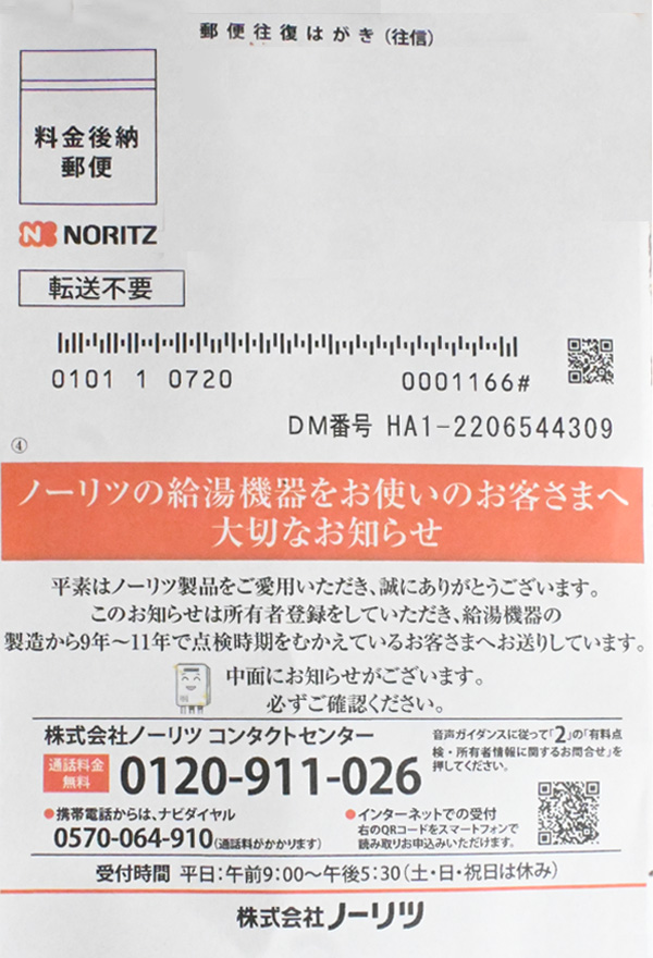 2013年に省エネ性能の高い現在使用しているNORITZのエコジョーズに交換してから早9年使用今日全く問題は出ていませんので、もう9年経っていたのは意識をしていませんが、点検のお知らせが届いてあらてめて「もうそんなに経ったんだなぁ」と実感しました。この点検には、このタイプのガス機器では11の法定点検と7つの自主点検が含まれていました。 燃焼機器の内部点検 トップへ
