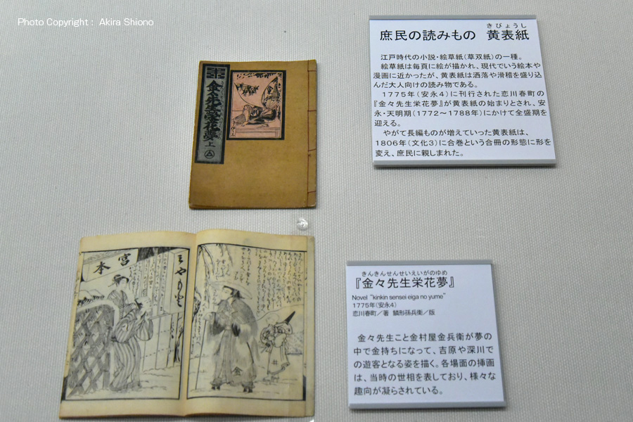人口が増加して、長屋などが接近して作られると、燃え易い材料で作られた日本家屋では大火事がつきものでした。消火法は消火ポンプなどがない時代でしたので、「破壊消火」で火が延焼しないように周りの建物を取り壊すというダイナミックな物でした。火消し達の組の目印の纏(まとい)が展示されています。こちらは、実際振り回すことができるようになっていますが、重量は15kgあります。 5F 出版と情報 トップへ
