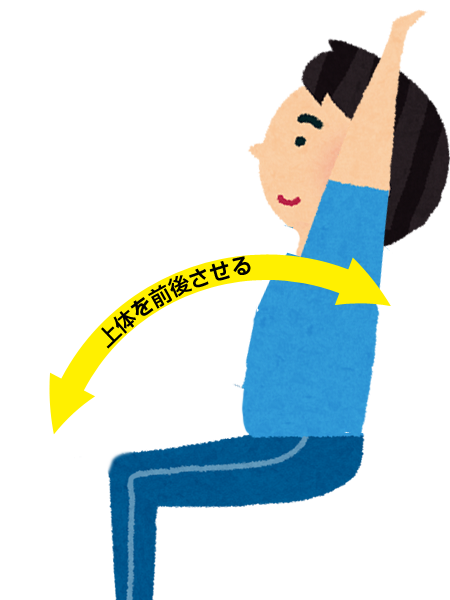 個人的には便秘ではありませんが、予定通りに排便が無かったり、お通じが少なかったりした時にこの体操を行います。これをする以前は、息んで排便をしていましたので、いぼ痔になっていて、時たま肛門から「回虫でもいるのかなぁ?」と感じることが多々ありました。この症状が、この体操によって皆無になりました。 次に上体を股関節を支点に腹筋運動をする様に上体を前後させます。数回動かしたら、両腕を上に伸ばすを繰り返します。そのうちに前屈するときに自然に便が排出されます。