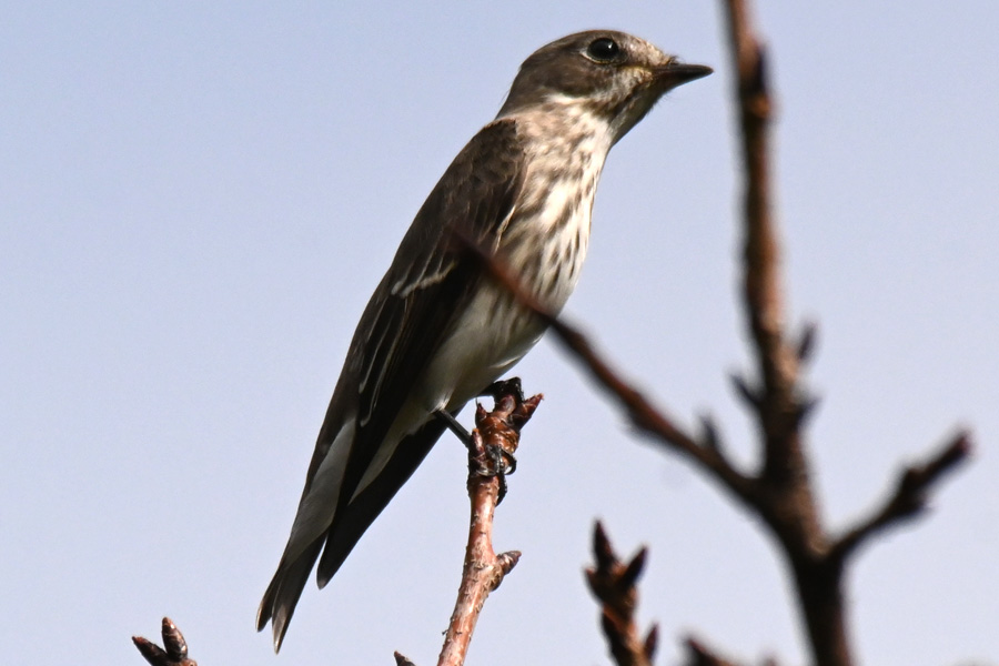 前回撮影したのが、2017年6月中旬でした。中々出会う機会がありませんでした。今回で5年ぶりになります。10月の自然生態園の木の先端近くの枝に留まっていたエゾビタキ。木の枝の先端に留まっていて飛び立っては元の枝に戻るを数回繰り返していました。このおかげでシャッターチャンスが増えました。なぜまた同じ枝に戻るのか?と調べてみると、見晴らしのいい高い枝に留まって餌になる羽虫を探している様でした。それで虫を捕まえては同じ位置に戻りまた捕まえにに飛び立つを繰り返していた様です。 ![]() 10月の自然生態園の木の先端近くの枝に留まっていたエゾビタキ。