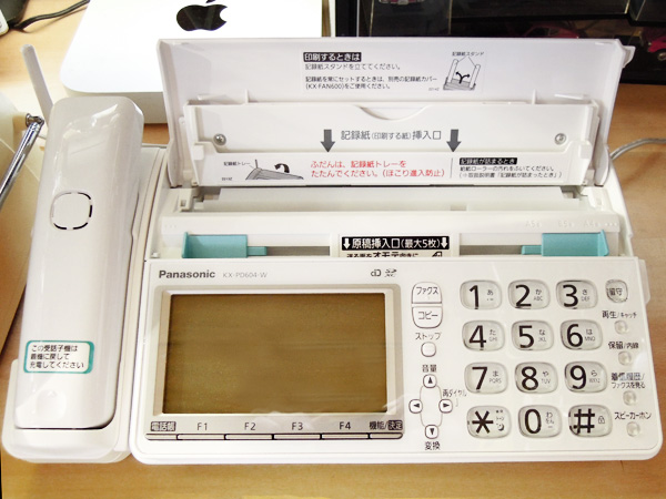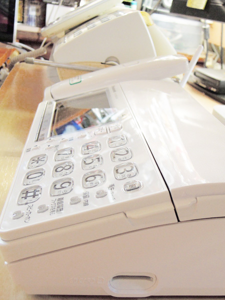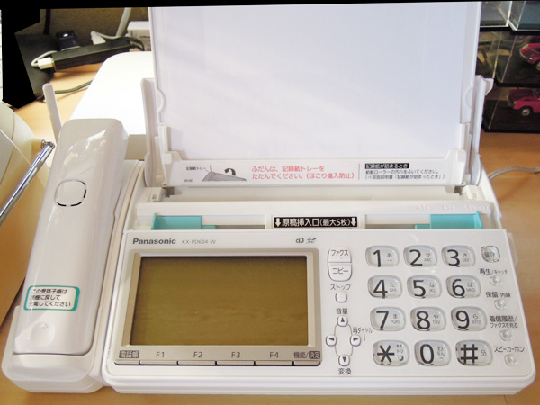 今販売されているファックス見て、あまりのサイズの違いに驚きました。(上・右上写真参照) コードレスの受話子機! トップへ