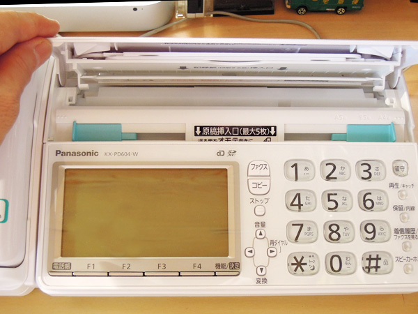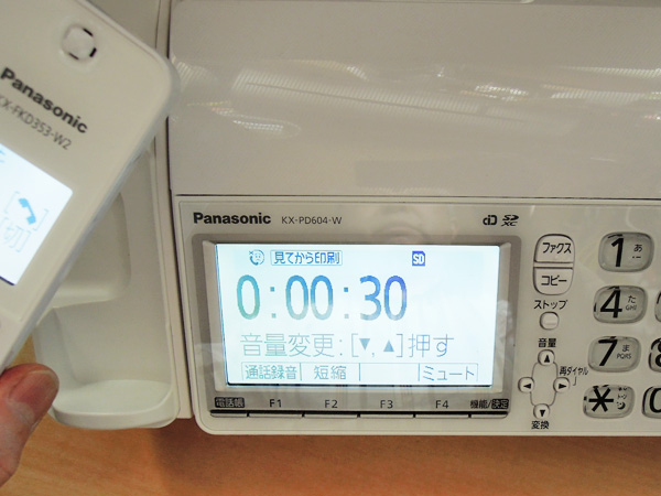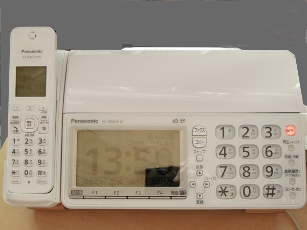 ファックスの受話器が、コードレス(親)子機になりました。こちらは子機と同じようですが、本体専用の子機となります。子機はこちらの本体には使えません。