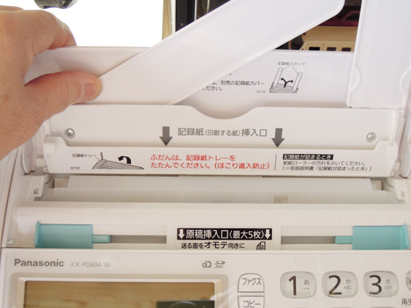 省スペースを実現した、折りたたみ収納の用紙ホルダー トップへ ファックス送信は、今やパソコンでも出来ます。必要なときと云えば「出欠の返事」など、送ってきた書類に書き込む等して送り返す時くらいしか個人的にはありません。そういう方々にとっては、使う時だけスペースを使うというのは合理的な方法と感じています。 迷惑電話防止対策を強化 あんしん機能が充実! トップへ 「迷惑防止*」を設定すると、呼出音が鳴る前に本機が応答して、相手に通話を録音するというメッセージを流します。着信中は呼出音と注意喚起のアナウンスを交互に繰り返し、電話に出ると通話内容を自動で録音します。SDカード(別売品)を使用すれば録音時間と録音件数を増やすことができます。