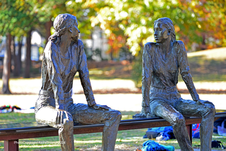 ![]() ここ府中の森公園は中央に丘がある公園。遊歩道から少し外れた場所には錦絵の様なモミジがあった 苔むした地面に落ち葉の風景 トップへ 秋の園内のオブジェクトの風景 トップへ ![]() 大きな広場のベンチにある若者たちのオブジェクト 撮影:NIKON D800+VR70-200mmf/4G 140mm ISO 400 1/200 f/4