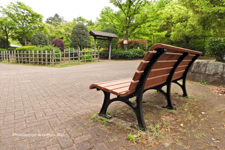 日本庭園入口前のベンチ 撮影:NIKON COOLPIXP1100 24mm ISO 100 1/50 f/8 +0.3段