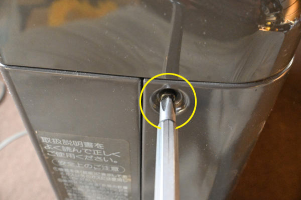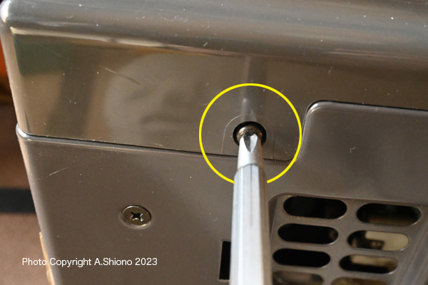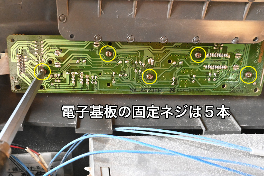 ![]() 固定してある5本のネジを外します。右は基盤の上面