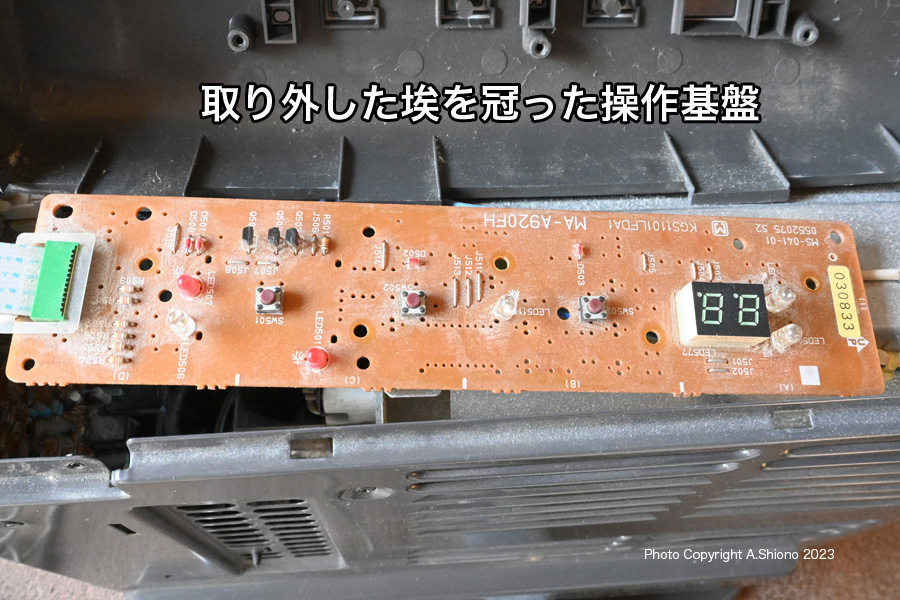 ファンヒーター類は外部の空気を吸い込んで、内部で加熱した空気を前面から排出する構造です。室内の空気と共にその部屋にある綿埃などを吸い込みます。綺麗な空気の場合問題は出ませんが、キッチン使用では調理時の油煙や衣類から出る埃も背面から吸い込んで、内部を通過して加熱され排出されます。この油煙が問題で、通常ならば内部を通過してくれるものが内壁に引っかかってします。これがセンサーの上に積もった場合悪さをします。この場合は、これを除去することが必要です。 移 動: スイッチ故障のGファンヒーター 電子基板を確認します 故障箇所を探す 未使用のタクトスイッチを移動する 新しいタクトスイッチの置換え リンク: 警告灯がすぐに点くフィルターの掃除 厚紙を使ったファンヒーターの掃除 シロッコファンの掃除 ★最終手段:分解内部清掃 別部屋のGファンヒーターの内部清掃 運転スイッチ交換 トップページ ![]() |
