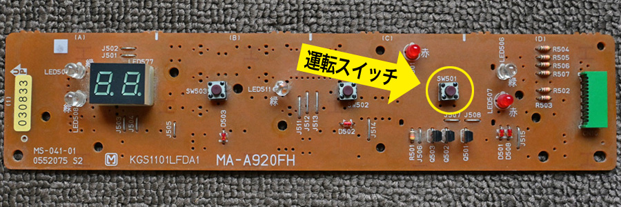 ガス暖房機の2台あるうちの1台は、2年前に運転スイッチの反応が悪くなり、色々な押し方をしてやっと点火する状況でした。結果的に原因は、トップカバー内にある電子基盤に取り付けられているボタン型の「タクトスイッチ」の摩耗が原因でした。その時に交換したのが4足の6mm角の高さ4.5mmの規格の4足のものでした。 分解して電子基板を確認します。 トップへ これからの作業は自己責任で行ってください。作業経験の無い方は、買い替えしてください。