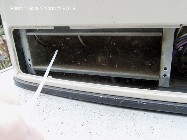 ![]() ガードを外して見てビックリ!積もった埃は、大量でまずハンディクリーナーで吸い取ります。
