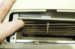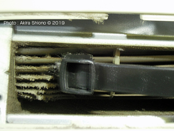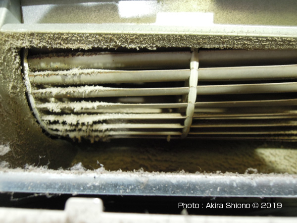 ![]() 吹き出し口の中はかなり埃が積もっています。