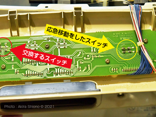 もう1箇所気になる所が反応が悪くなった運転スイッチです。このスイッチは5つあるスイッチの中で一番酷使される所です。流石に長期間使用していると徐々に運転スイッチが触れても入らす、何回も押し直しをしなけばならなくなってきました。