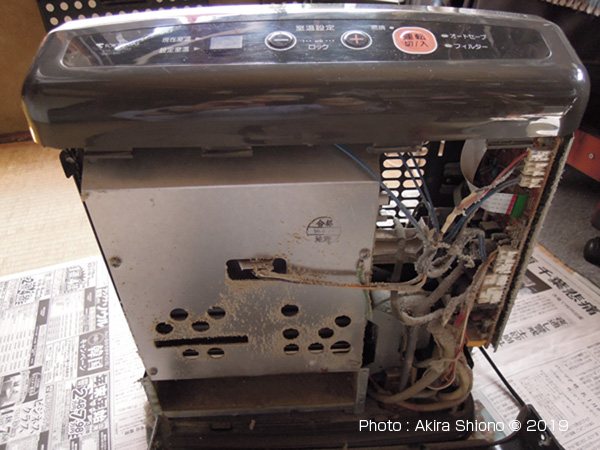 この機種東京ガスMA-A920FHの製造日を調べたところ1998年8月に販売が開始されたものだということが分かりました。現在が2019年10月なので、使用年数が21年越えの製品ということでした。しかし別の部屋で使用しているがファンヒーターは、2005年8月製造のものでこの製品より7年位後の製品です。こちらはキッチン使用の為油煙のせいでこびり付いて、ホコリが粘ついて排出がうまくできなかった様で内部に溜まっていました。
