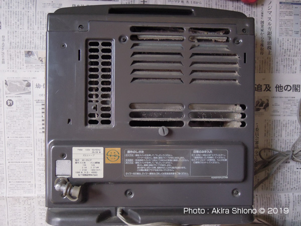前回、キッチン使用で自然消火してしまうガスファンヒーター「RR-2406-X」を分解清掃して機能回復したのに引き続き、居間で使用しているMA-A920FH分解清掃してみることにしました。調べてみるとこの機種は1998年8月に販売が開始されています。現在が2019年10月ですので、なんと21年も経っていました。しかし、このガスファンヒーターは、後ろのフィルター掃除くらいで、全く問題なく温風を送り出してくれます。 使用する用具 トップへ