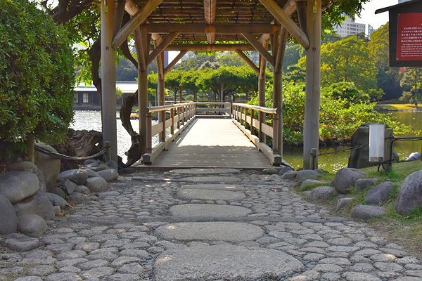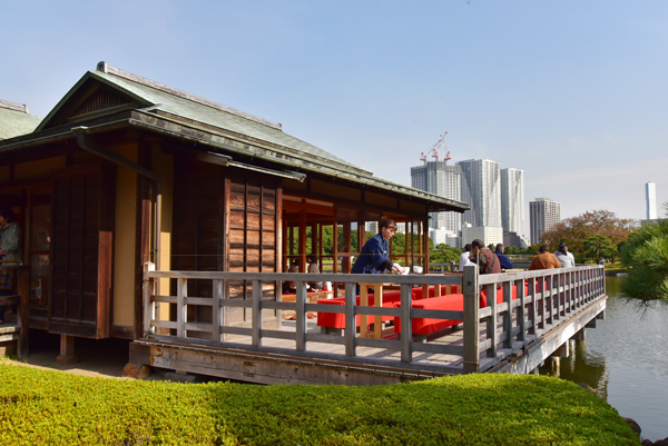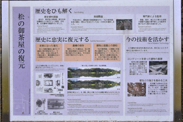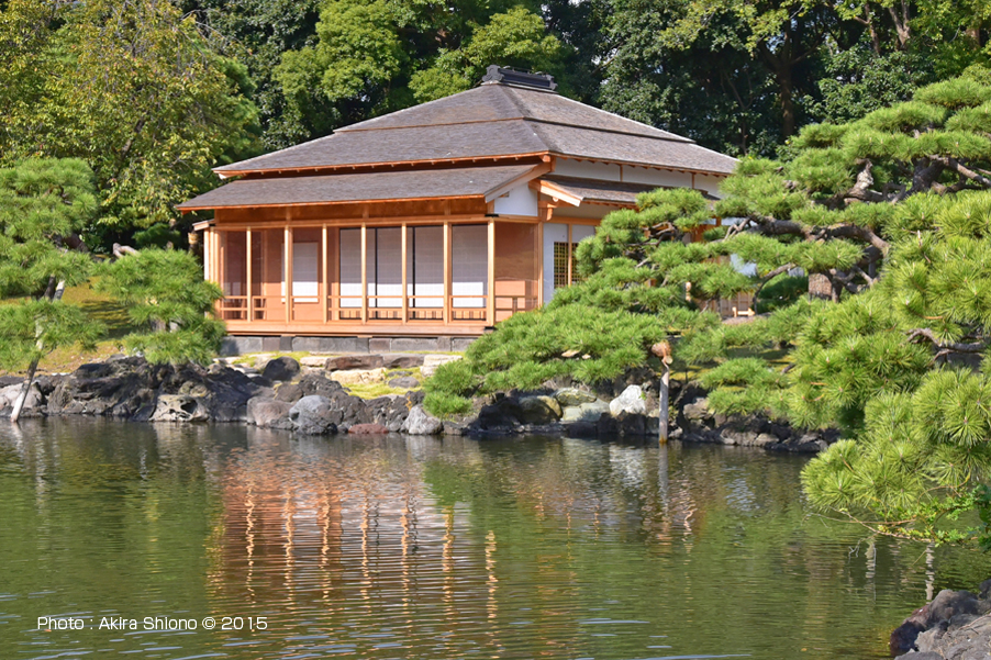 大泉水の北東にある松の御茶屋は平成22年に忠実に復元されました。 庚申堂鴨場 トップへ 浜離宮恩賜庭園/御茶屋等の復元 トップへ