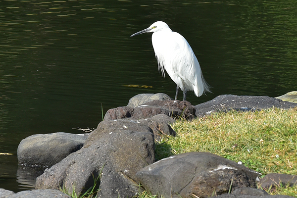 松の御茶屋の復元に関する説明が丁寧に説明されています。小の宇島の岸には白鷺が魚を狙っていました。