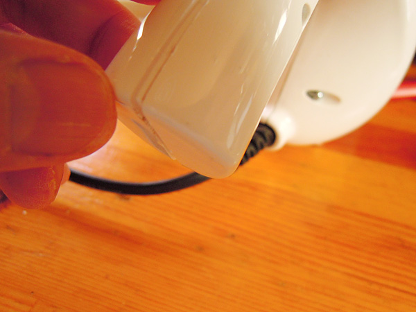 なかなかのパワーで使いやすいハンディクリーナーですが、気が付いた時にすぐに使えるようにスタンバイ状態にしておくと掃除が億劫になりません。 グリップ部分にコードを取り付ける トップへ 引っ掛け式にする為には、本体に穴を空けます。しかし、場所によって本体にダメージを与える場合があるので、本体の内部を確認します。本体にはグリップに2ヶ所、本体に4ヶ所のネジで左右が合わせて止められています。グリップ部分の内部が確認できスムーズに開くように、4ヶ所のネジを完全に緩めます。確認の結果、邪魔にならない場所で、安全な場所はグリップの引っ掛かり部分に穴を空けます。