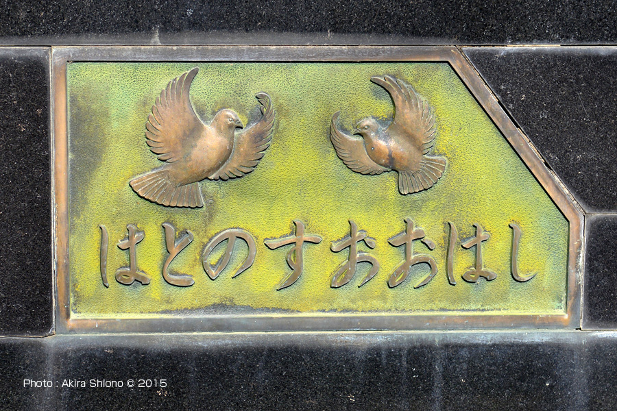 ![]() 橋名板の左側には漢字で「鳩の巣大橋」とあります。橋名板の右側には平仮名の「はとのすおおはし」