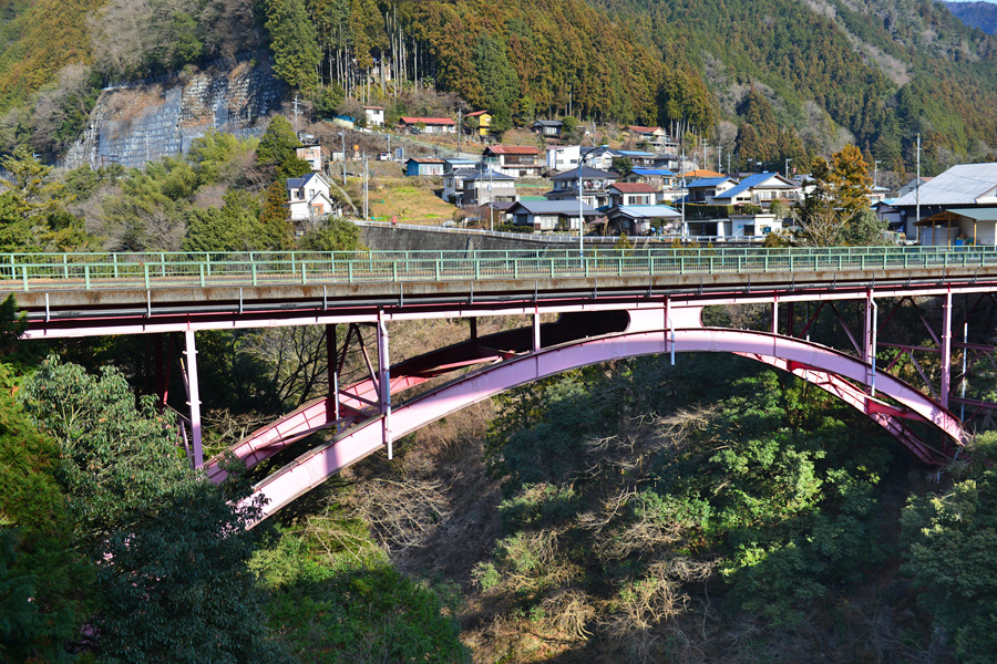 移 動: 鳩ノ巣大橋 橋名板は「鳩のモチーフ 多摩川南岸道路の将門大橋 リンク: 5月の御岳渓谷遊歩道の軍畑〜楓橋所 御岳発電所〜せせらぎの里美術館 5月の御岳渓谷遊歩道の軍畑〜楓橋所 5月の御岳渓谷遊歩道の軍畑〜楓橋所 新緑の鵜の瀬橋から御岳小橋 <澤井から鵜の瀬橋 新緑と紅葉の澤井〜御岳発電所 1月の御岳発電所から御岳小橋 青梅 軍畑/楓橋下流の2月と野鳥 12月の澤井/楓橋周辺と野鳥 鳩ノ巣大橋 トップへ 鳩ノ巣大橋は、青梅街道の将門交差点のY字路から南側に下った入った位置にありますが、本来は、雲仙橋を渡りJR青梅線の鳩の巣駅に向かう大きな渓谷架かるに旧道の橋でした。谷が深い為鳩ノ巣大橋は大型の上路式アーチ橋です。 橋の先で右側にカーブして駅近くの雲仙橋に繋がっていますが、この橋はもとは吊り橋でしたが、現在は橋下がトラスで補強されています。幅も狭く5ナンバーがギリギリ通れるほどの橋で、車両の重量制限がありますが鳩ノ巣大橋から繋がっています。鳩ノ巣大橋の東将門交差点方向は地形的に平地が広く、住宅、建設業者などがあり、駅前に出るには地元住民にとって大切な橋になっています。 元は吊り橋だった鳩ノ巣駅近くの雲仙橋 橋名板は地名にちなんだ「鳩のモチーフ」 トップへ