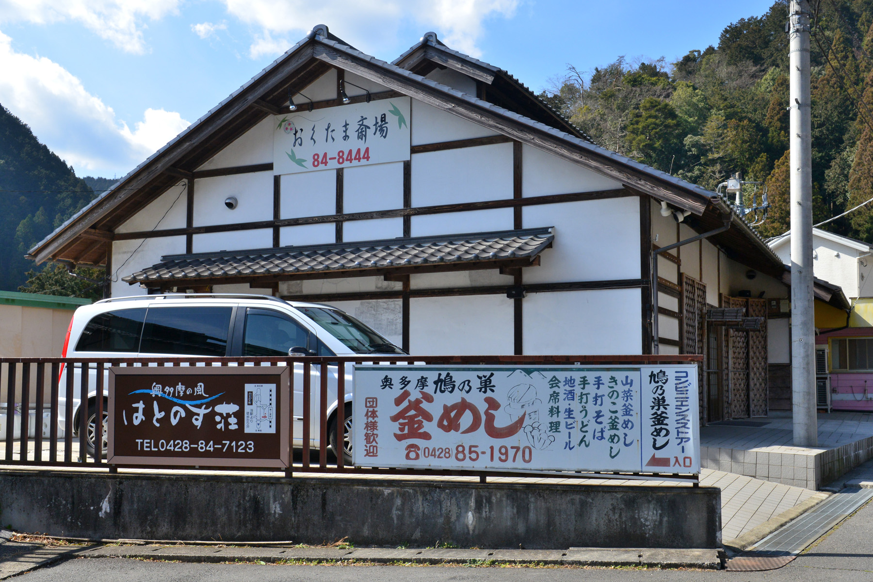 鳩の巣 西踏切の向いには「鳩ノ巣コミュニティセンター」があります。右は奥多摩方面の景色 鳩ノ巣駅前の青梅街道周辺 トップへ 鳩ノ巣駅前には先述しましたように、青梅街道が通っています。この路沿いには「釜飯店」と「軽食・喫茶店」があります。また奥に入った駐車場の沢の脇には、蕎麦店があります。 鳩ノ巣駅前の青梅街道に架かる橋『棚沢橋』 トップへ JR青梅線の鳩ノ巣駅は深い山にある駅です。そのため、山から湧き出た川が低い鳩ノ巣渓谷に流れ込んでいます。西側には『西川』と東には『舟川沢』が駅を挟むように流れています。その東側の青梅街道には、の舟川沢に架かる『棚沢橋』があります。橋の上には西東京バスの奥多摩駅行きの停留所が見えます。