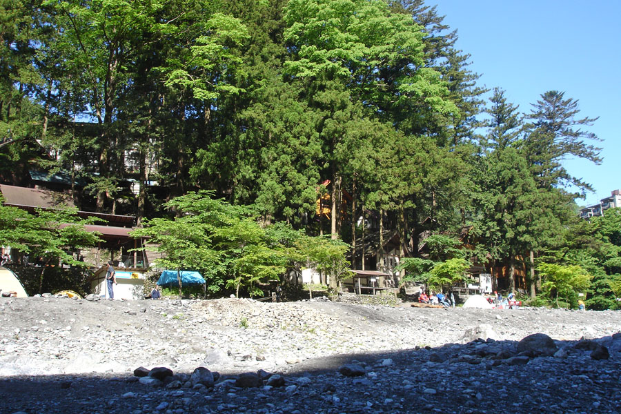 ![]() 河原に近い小型のバンガローから川の景色が見え開放感があり自然を満喫できます。 ![]() 大型のクッキングスペースが数カ所あります。 ![]() 河原から見た氷川キャンプ場で、河原のテント泊も可能です。 もえぎ橋から温泉への近道 トップへ