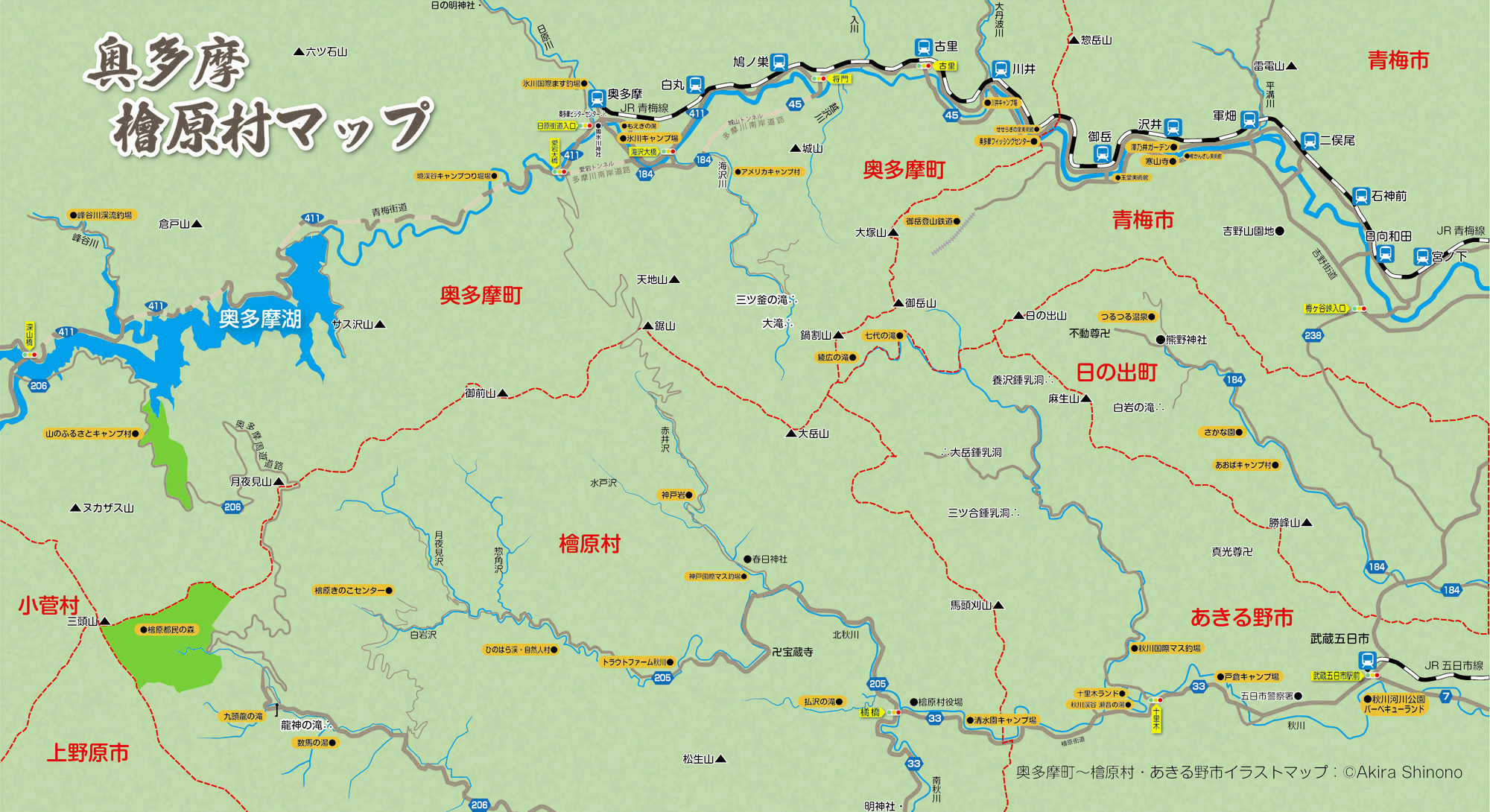※檜原村・奥多摩周辺のスポットの拡大マップ(2000x1090pix:715KB)はこちら