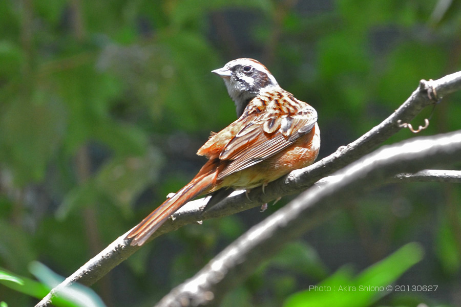 広い河原の草に留まり羽繕いをするホオジロの背。 NIKON D500 +TAMRON150-600mm f/5.6-6.3 900mm相当 1/2500 f/11 -0.3段 トリミング 上流域の河岸のホオジロ トップへ ![]() 6月の青梅の多摩川の大岩の上に留まるホオジロ。