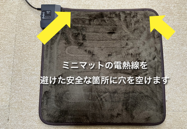 滑り落ちるホットミニマット対策 移 動:滑り落ちるホットミニマット対策 マットの固定方法 ここで使う用品 ホットミニマットにヒモを取り付ける デスクチェアーに取り付ける リンク: 廃電気製品からコードを再生 裂けたビニール傘修理 厚手ビニール製品の溶着 滑り落ちるホットミニマット対策 トップへ 冬のデスクワークを快適に行うためには、室内の暖房と足元のヒーター、そしてホットミニマットがあると快適です。このなかで肌に直接触れるホットミニマットは少ない電力で、暖かい効率の良い電気製品です。このホットミニマットは床で使う時は体を動かしてもずれるだけで余り気になりませんが、デスクチェアーで使う時は立ち座りをすると摩擦でずれていつの間にか床に落ちてしまうことがあります。今回はこの対策を考えて見ます。ちなみに、他のイス類でも応用ができます。 マットの固定方法 トップへ