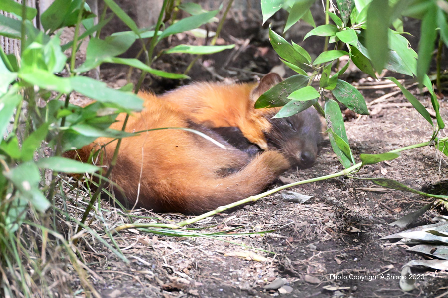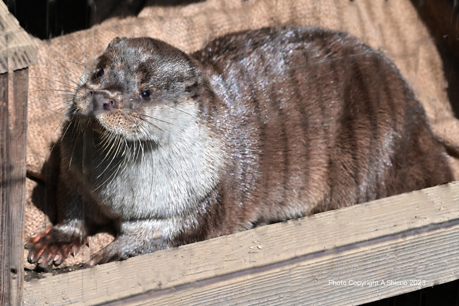 ジメジメした土が好きなようです。 撮影:NIKON Z7+TAMRON 70-300mm f-4.5-6.3 f/9 FX:Lサイズ70~193mm ISO 4000~2000 1/80~200 f7.1~9 0段 手持ち撮影 ホンドギツネ トップへ ![]() 日中はぐっすり寝ているようです。※画像加工で檻を軽減いたしました。 撮影:NIKON Z7+TAMRON 70-300mm f/4.5-6.3 f/9 FX:Lサイズ128mm ISO 640 1/160 f9 0段 手持ち撮影 ホンドテン トップへ ![]() 草むらの中で薄眼を開けてぐっすり寝ているホンドテン。 撮影:NIKON Z7+TAMRON 70-300mm f/4.5-6.3 f/9 FX:Lサイズ241mm ISO 800 1/250 f9 +0.7段 手持ち撮影 ユーラシアカワウソ トップへ ![]() 飼育箱から一旦出てきたユーラシアカワウソ※檻の影は画像処理で消去 撮影:NIKON Z7+TAMRON 70-300mm f/4.5-6.3 f/9 FX:Lサイズ121mm ISO 1250 1/1250 f9 +0.7ß段 手持ち撮影