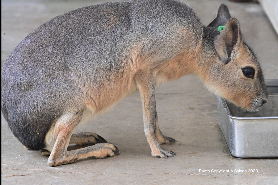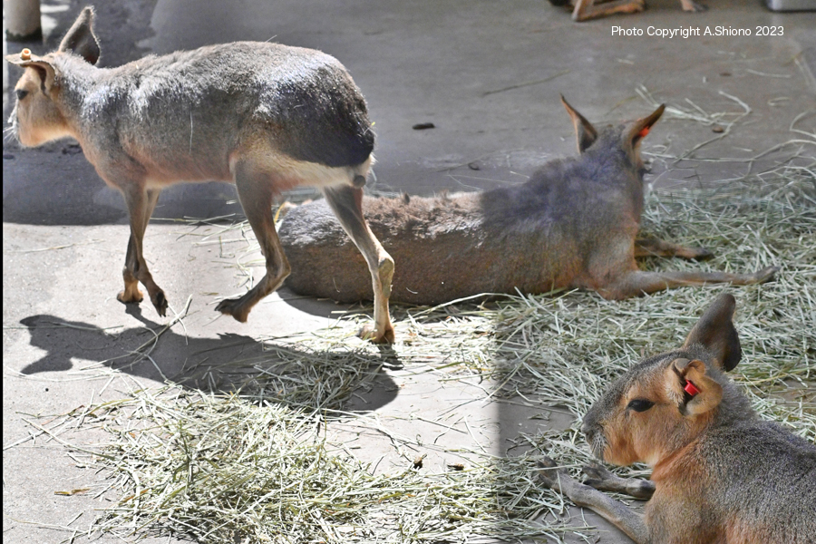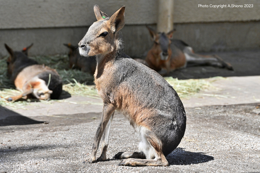 先ほどのハナコの居たエリアは「ハナコの記念館」の様になっていました。 マーラとカピバラ トップへ ![]() マーラは、ウサギのようなカピバラの様なネズミの様な不思議な動物です。 撮影:NIKON Z7+TAMRON 70-300mm f-4.5-6.3 f/9 FX:Lサイズ180mm ISO 1250 1/2000 f9 0段 手持ち撮影