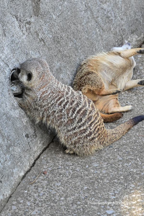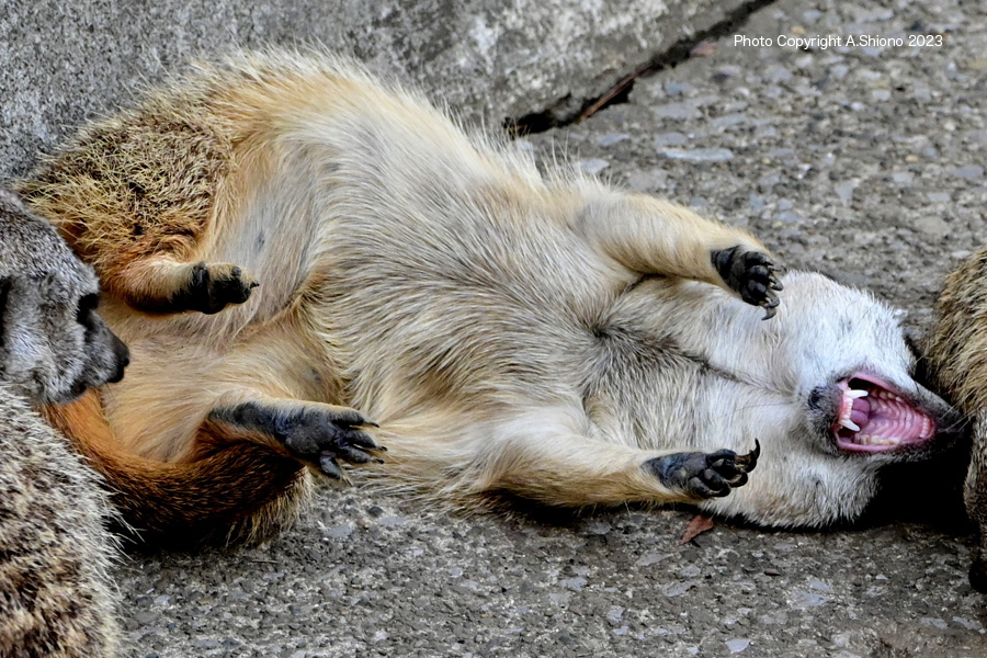 ![]() やはり日向は暑い様で日陰で休んでいます。 撮影:NIKON Z7+TAMRON 70-300mm f-4.5-6.3 f/9 FX:Lサイズ300~85mm ISO 4500~1250 1/1250 f9 +0.7~0段 手持ち撮影 ![]() カピバラも小屋の端っこの日陰が多い場所で休んでいました。 撮影:NIKON Z7+TAMRON 70-300mm f-4.5-6.3 f/9 DX:Lサイズ30åå0mm ISO 1000 1/100 f13 +2.0段 手持ち撮影 トリミング 露出補正 ミーアキャット トップへ ![]() 3頭でじゃれてひっくり返ったミーアキャットですが、爪はかなり鋭い。