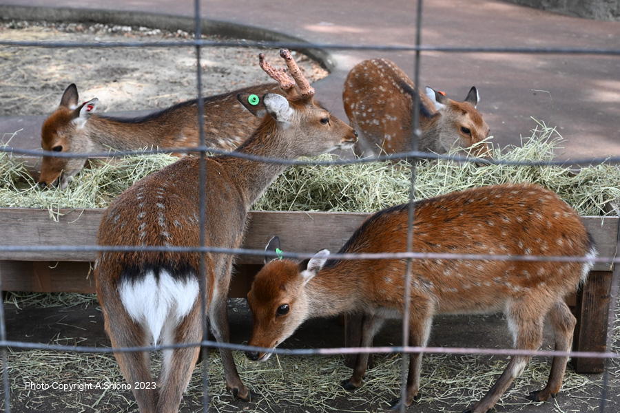 ヒツジ(コリデール)とニワトリ(チャーン) 。 撮影:NIKON Z7+TAMRON 70-300mm f/4.5-6.3 f/9 FX:Lサイズ178mm ISO 500 1/200 f9 0段 手持ち撮影 カモシカ トップへ ニホンジカ トップへ ![]() エゾシカ、ホンシュウシカ、ヤクシカは皆ニホンジカ 撮影:NIKON Z6II+Z24-70f/4S FX:Lサイズ62mm ISO 1000 1/200 f7.1 0段 手持ち撮影