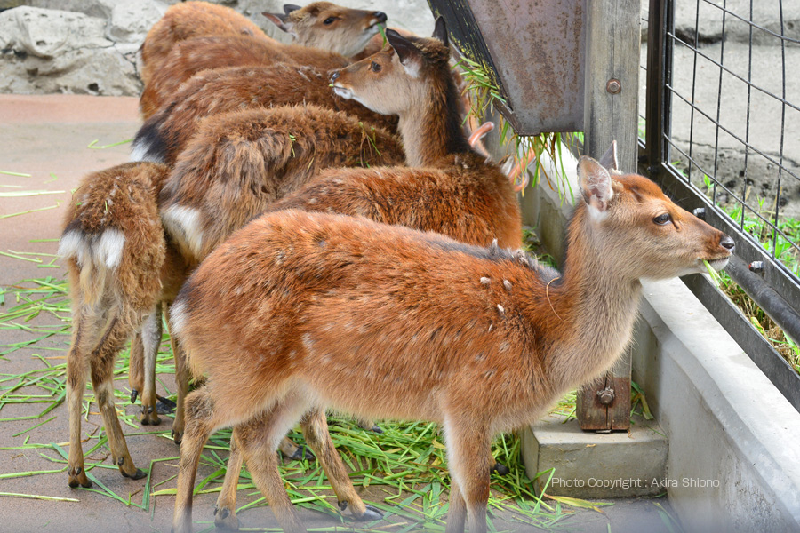![]() シカの角の比較 左ーヤクシカ 中ーホンシュウジカ 右ーエゾシカ 右ー関東の野山にいるタヌキもこちらで観察できる