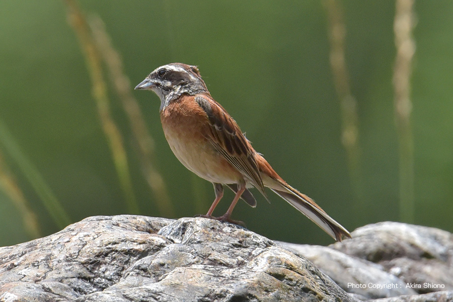 大岩の上で河原を見渡すスズメに似た「ホオジロ」。木立の枝で一休みする「エゾビタキ」