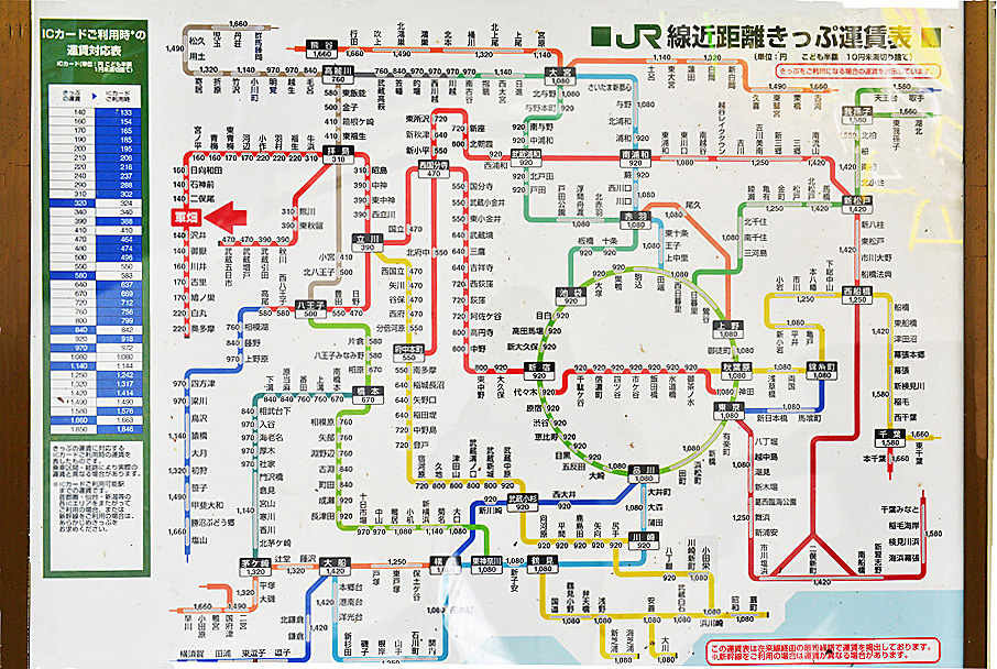 軍畑駅は、南側にしか改札口がありません。左にはトイレが見えます。 ホームから立川方面の景色です。 JR線近距離きっぷ運賃表(※2017年当時) トップへ 青梅ハイキングコース トップへ 移 動: 軍畑駅:青梅線の標高 軍畑駅の特徴とその周辺 JR線近距離きっぷ運賃表 青梅ハイキングコース リンク: 御岳渓谷遊歩道を軍畑側から入る 奥沢橋梁:青梅線の鉄橋