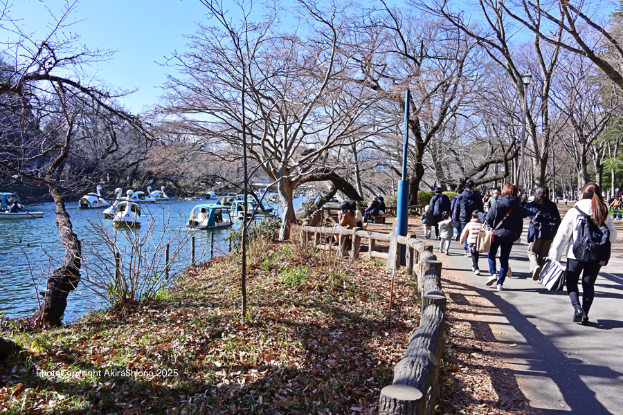 ![]() 池中央の七井橋の南側にあるボート場とスワンボートで混雑する池