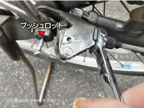 ![]() 試走行して変速の作動状況を確認してから、カバーを取り付けます。 内装3段変速機のプッシュロッド トップへ