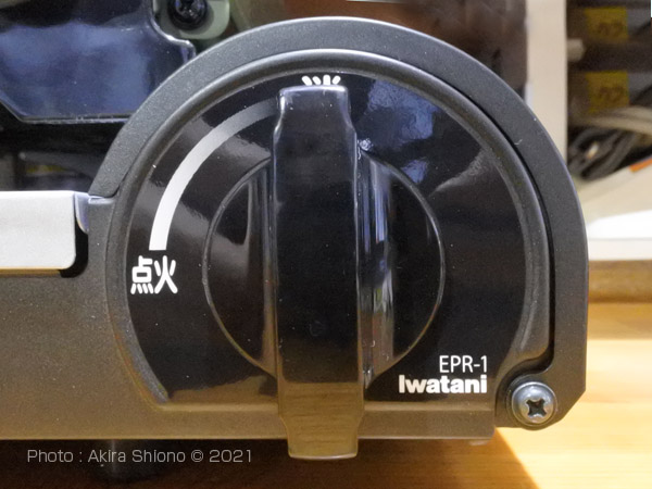 ![]() 上から見たエコプレミアムと点火兼用火力調整つまみ