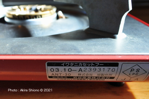 ![]() エコプレミアム内炎式バーナーのアップ。製造年は2020.11月でロングセラーの様です。 エコプレミアムとタフまるJr.のサイズ比較 トップへ