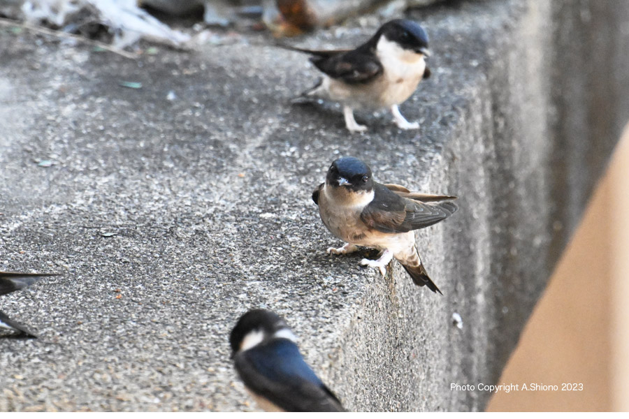 コンクリートの梁にイワツバメ4羽が集まっています。 撮影:NIKON Z9+TC-20+Z400mmf4.5VR S 800mm ISO 6400 1/800 f10 0段 トリミング