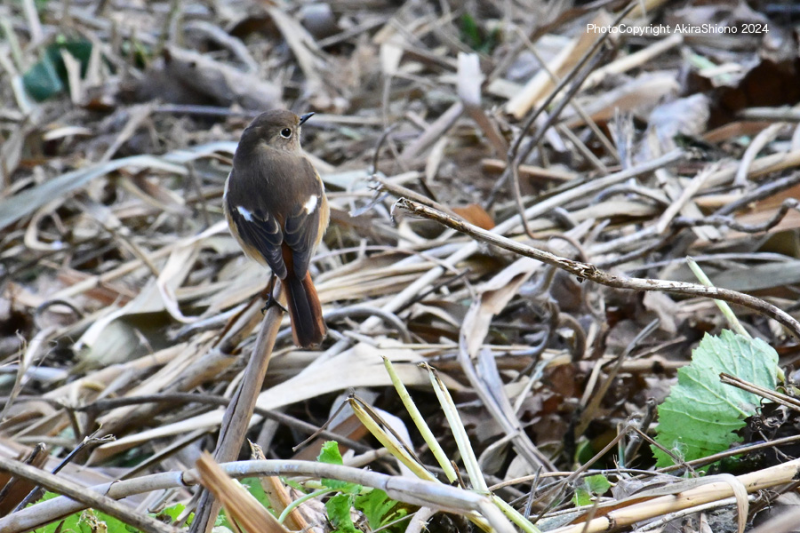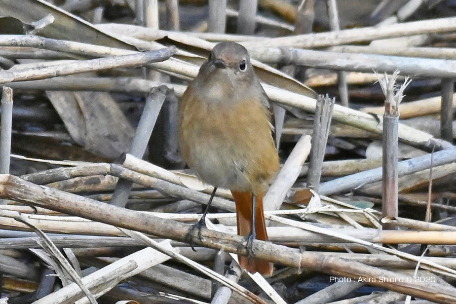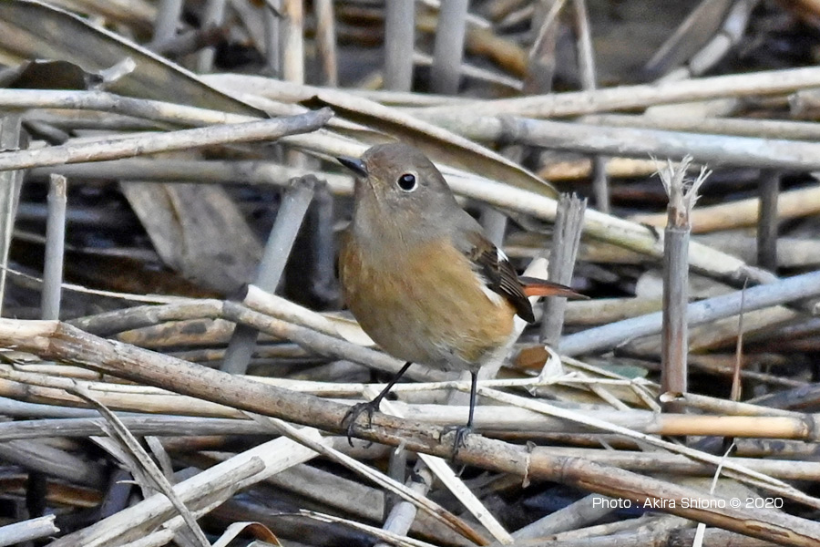 ![]() 12月刈られた日陰の葦原の枯れた茎に留まるジョウビタキ 撮影:NIKON ZII+AF-S200-500mm f5.6E+TC-20EIII 1200mm相当 ISO3200 1/1600 f11 トリミング 11月下旬のジョウビタキ トップへ 11月上旬のジョウビタキ トップへ ![]() 11月上旬の府中市の多摩川近くの林で見かけた、枝に留まるジョウビタキのメス横の姿で、幾分胸のオレンジ色が薄めです。 ![]() 11月上旬の府中市梅園の杭に留まるジョウビタキのメスの後ろ姿です。 撮影:NIKON D500+TAMRON SP150-600mm f5-6.3 900mm相当 ISO2500 1/400 f10 手持ち撮影 冬に見かける野鳥:ジョウビタキ トップへ ![]() 2月の青梅の多摩川の川原の枯れ枝に留まるジョウビタキのメス横の姿で、オレンジ色と灰茶色が綺麗です。