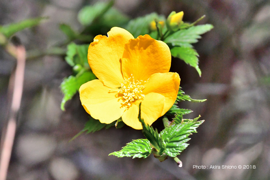 左は和紙の原料になる「ミツマタ」の花のアップと山吹の花