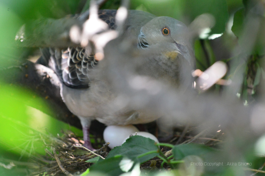 キジバトはハト目ハト科キジバト属の野鳥です。体長は約33cmと身近な野鳥ではカラスにの次に大きな鳥です。羽・背あたりに黒に茶色いウロコ模様がはいっています。鳴き声はグッグッポポー グッグッポポーと低音で鳴きます。首の左右に黒と灰色の筋模様が入っています。首あたりが青〜緑の虹色のようなハトはドバトで、公園や神社の境内などでよく見られます。 キジバトの巣作り候補地選定 トップへ キジバトの巣作りは、ベランダなどでも行われると地方の話題などで取り上げられたりします。自然の中で、子育てをするには、外敵に見つからずに尚且つ荒れる天候から産卵〜巣立つまで守れる場所が必要です。こちらでは庭の梅の木がこの役目を果たしている様です。 キジバトの産卵と旅立ち トップへ 詳しくは、下記リンク「キジバト物語/産卵から巣立ち」、「キジバト物語2/産卵から巣立ち」でご覧になれます。その他のカメラとレンズ トップへ 一眼カメラと望遠レンズを探す ご興味の方は、下のamazonのリンクで製品の評価などを見れます 移 動: 郊外で良く目にする野鳥:キジバト リンク: 郊外で目にするキジバト キジバト物語/産卵から巣立ち キジバト物語2/産卵〜巣立ち 多摩川の野鳥たち/シラサギ トビの飛ぶ顔 トビが鮎捕獲 トビが蛇の奪い合い トビが野鳥捕獲 野鳥サイト(104種) 野鳥分類別サイト 野鳥サイトリスト版 野鳥サイトの分類表 CHSのIROIROサイト:人気ページ トップへ |