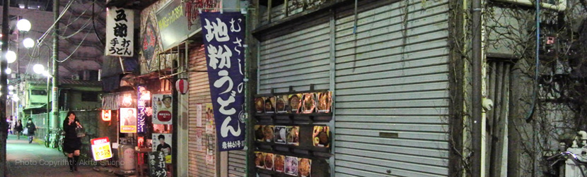 ![]() 左−大通りの東側の一角も再開発される 右−おなじみの飲食店も再開発地域 北小路商店会 トップへ